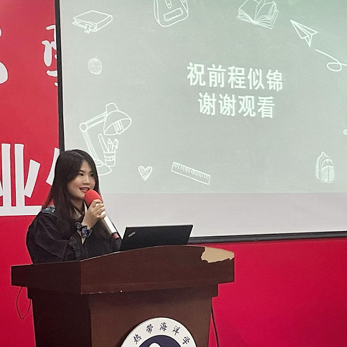 首先,陈娴雅作为毕业生代表向母校和yl88858永利中国的老师、同学们表达了自己的祝福与感谢;张文超作为在校生代表祝福2017级毕业生前程似锦。yl88858永利中国副院长张沈青老师、教师代表吴清燕老师上台为毕业生们送上祝福与期盼。“同学们,你们即将从热海大出发,面向更广阔的天地,希望你们成为中华民族伟大复兴的奋斗者和追梦人。”张沈青副院长用最真挚的话语表达了对毕业生们的殷切期望。